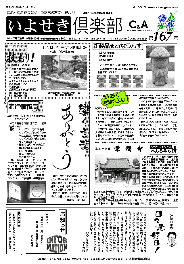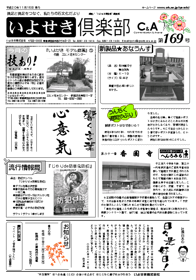 国産の伊予青石から灯篭、墓石、庭石から記念碑、モニュメントまで石のことなら何でも揃う